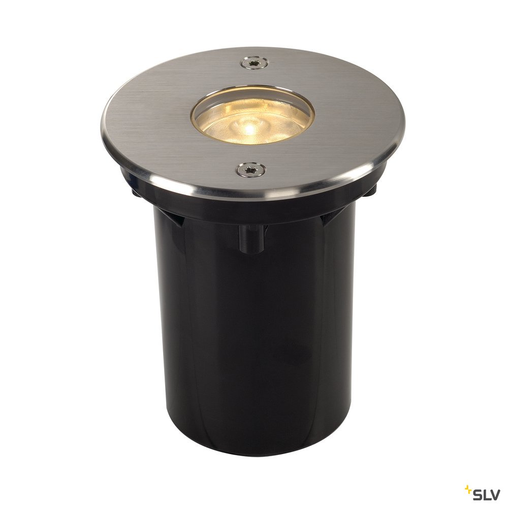 The walkable 240V inground fitting DASAR 920 LED HV with a round stainless steel bezel and glass cover with warm-white, high-performance power LEDs. With its IP67 protection class, the luminaire is suitable for outdoor use. The electrical connection is made directly to the 230V mains supply. A mounting pot is included in the delivery for simple assembly. Alternatively, there is a PRO version of the light with stainless steel housing. This luminaire contains built-in LED lamps.