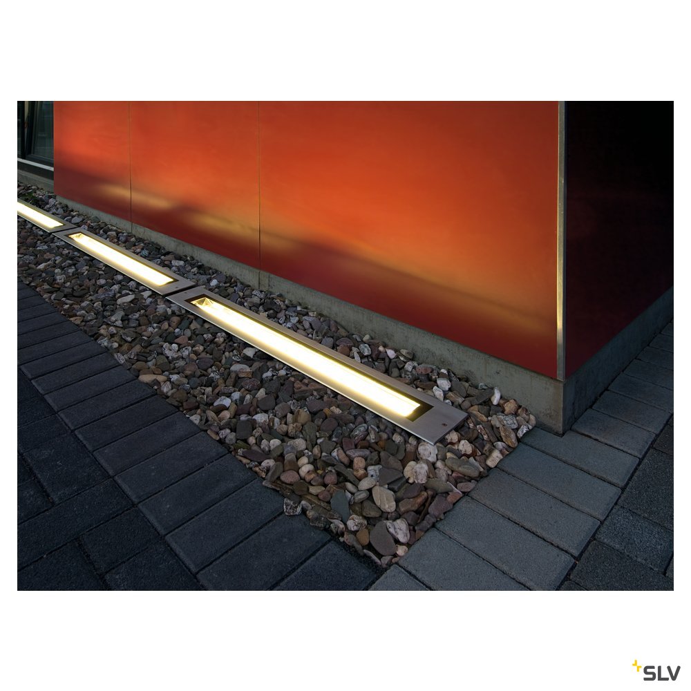 Walkable inground fitting with transparent glass cover and incorporated ballast for fluorescent lamps. With its IP67 protection class, the luminaire is suitable for outdoor use. An installation profile is included in the delivery for simplified installation. In addition, through-wiring is possible.