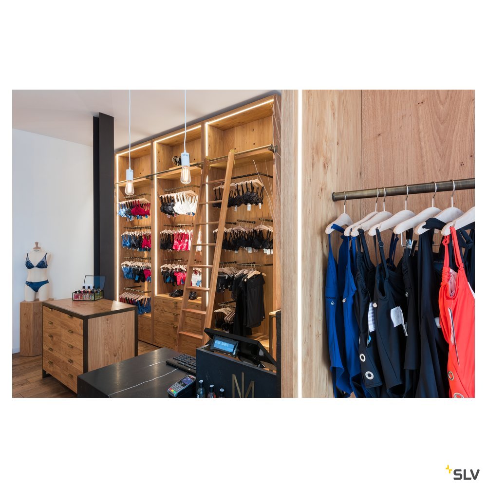 The FITU pendant can be combined with FITU ceiling plates of any colour. With its in-built E27 socket, the luminaire is suitable for both LED and energy-saving lamps. Pendant length is 250 cm and can be shortened depending on installation needs. Supplied ready for direct connection to 230V mains supply.