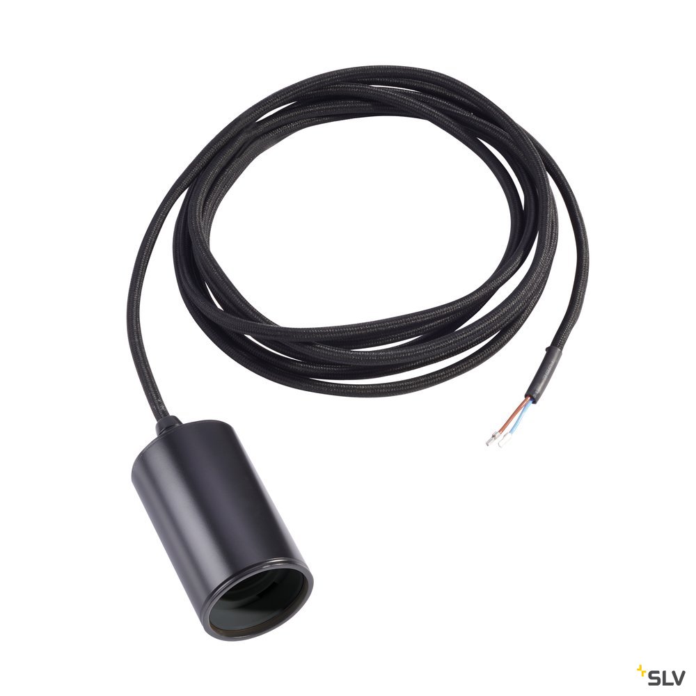 FITU, pendant, LED E27, round, black, 2.5m cable with open cable end, 60W