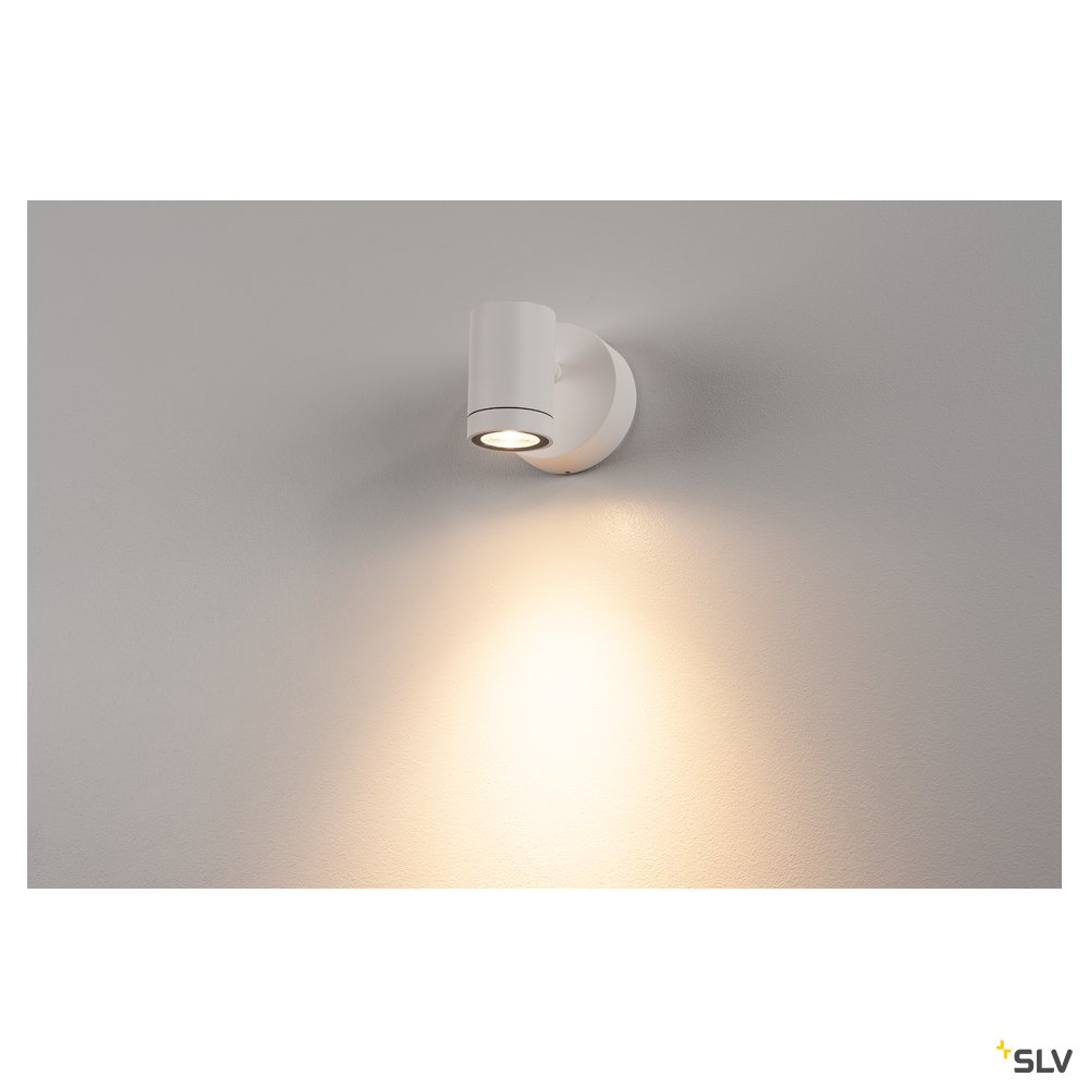 The puristic single-headed HELIA wall light consists of a cylindrical aluminium structure and it fitted with one warm-white high-voltage LED. The electrical connection of the luminaire, which comes in white, beige and anthracite, is made directly to the 230V mains supply. With protection class IP55, the floodlight is suitable for outdoor use. This luminaire contains dimmable LED lamps. The lamps in the luminaire cannot be replaced. The HELIA series contains further pendants, wall lights, display lights, path lights and floor stands, and as such can be used universally.