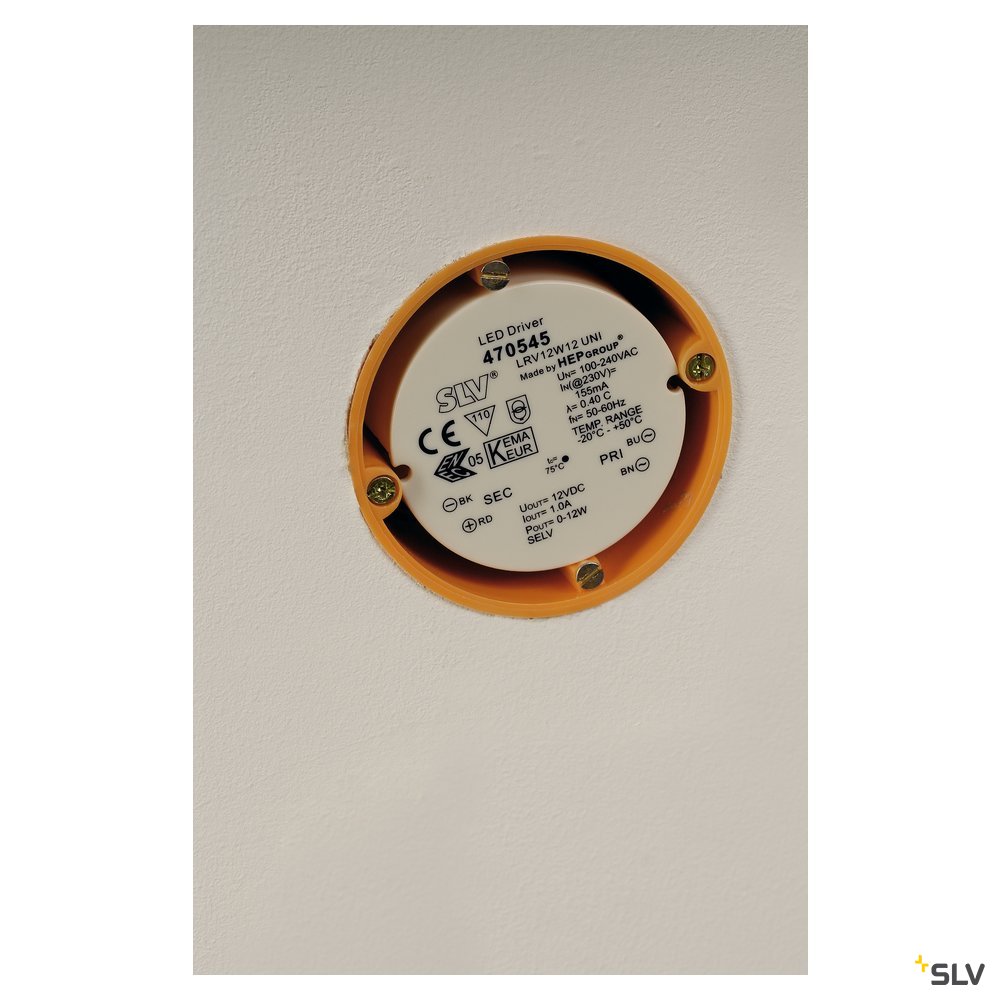LED power supply providing 12V constant current and a maximum output power of 12W. It is already equipped with 12.5 cm primary lead and 14.5cm secondary lead. Thanks to its construction, it is suitable for installation in switch or conduit boxes measuring 60 mm in diameter.