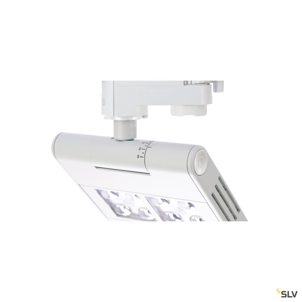 Modern 240V LED spotlight in the LENITO series, with suitable adapter for the 240V 3-circuit track system. The premium LEDs are within the grid. This rotating and swivelling luminaire is available in different colours, and provides wide, homogeneous illumination.