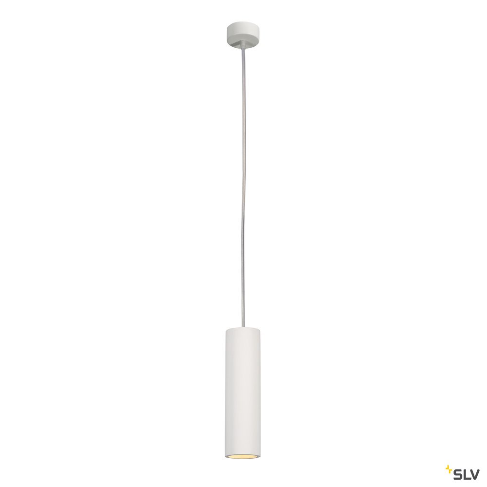 PLASTRA TUBE pendant, white plaster, round, GU10, max. 7W