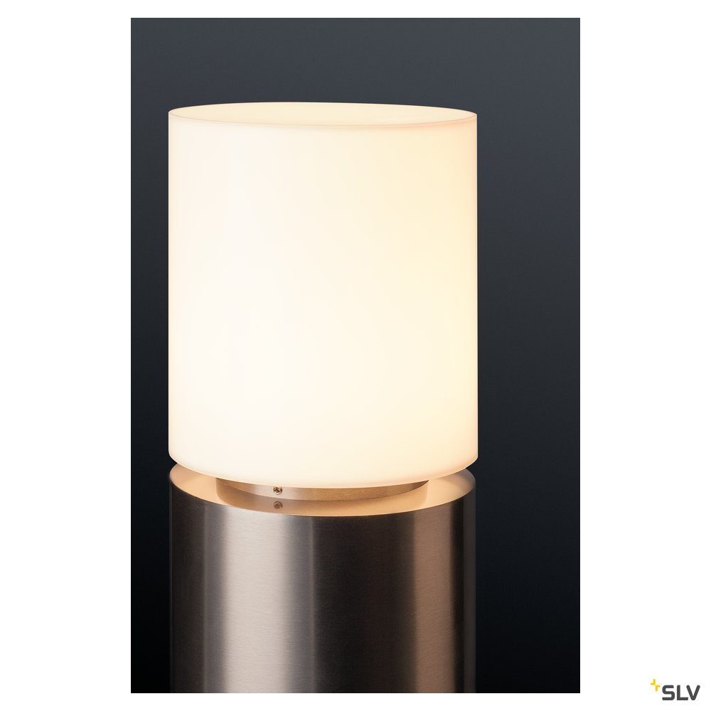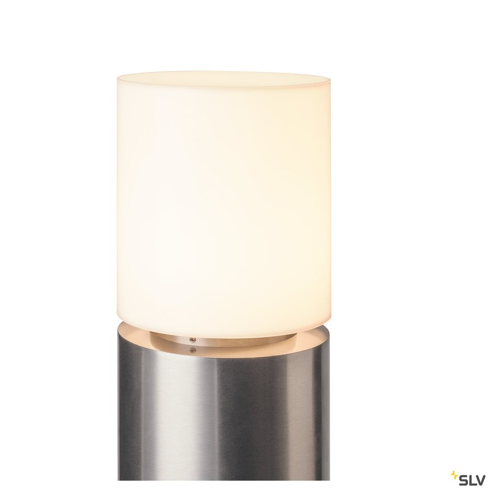 The ROX ACRYL POLE 90 floor stand is made from stainless steel 316 and opalescent acrylic glass that surrounds the built-in LED completely. With protection class IP44, the luminaire is available in several heights and is suitable for outdoor use. The electrical connection is made directly to the 230V mains supply. The ROX ACRYL series also includes wall and ceiling luminaires and can therefore be used universally. For simplified mounting, through-wiring is possible and an earth-spike and a concrete anchor set are available as accessories.