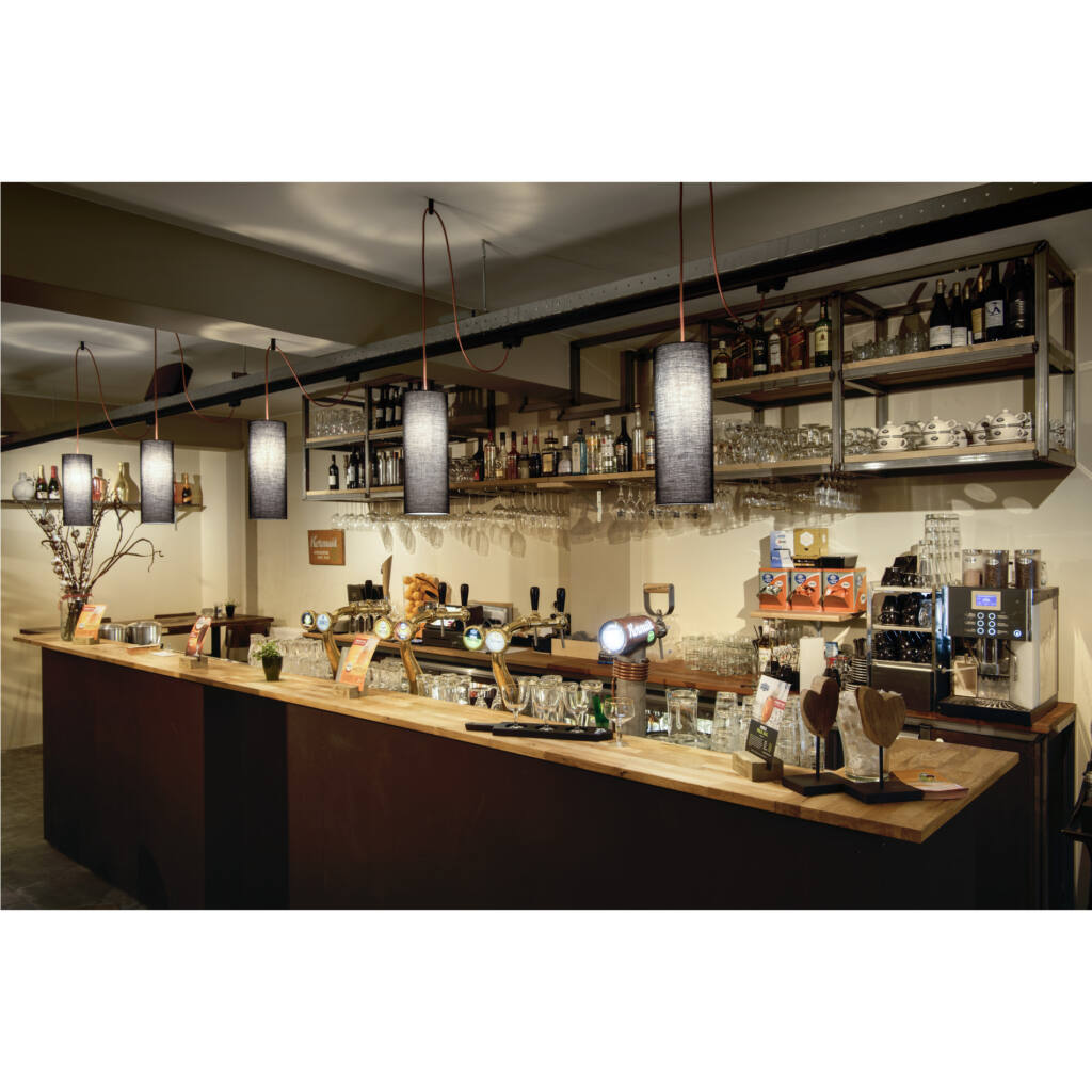 Luminaire adapter for the 3-circuit 240V track system. Available in various colour versions, the adapter contains a hole for pendant luminaires with steel rope suspension.