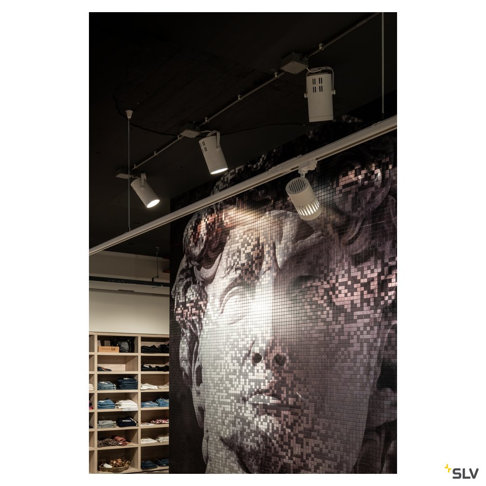 STRUCTEC LED spot for 3-circuit 240V track, 30W, 3000K, 36°, white, incl. 3-circuit adapter