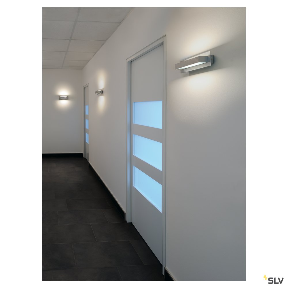 The high-voltage wall lamp TANI is a combination of aluminium and glass and is available in brushed-aluminium or chrome colour version. Prepared for the use of high-voltage halogen bars typed R7s, the wall lamp with strong design character is ready for direct connection to 230V mains supply.