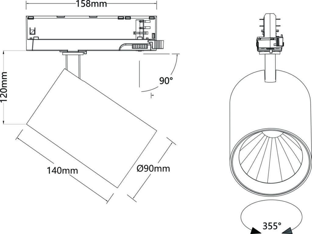 TRACKSPOT P90 seerial on selge, ajatu disain, integreeritud draiver ja muljetavaldav kasutegur kuni 170 lm/W. CRI>90 värvide reproduktsioon ja heledate värvide valik (3000 K / 4000 K) tagavad suurepärase valgustuse nõudlikes valgustusolukordades – kauplustest ja supermarketitest vastuvõturuumideni. Saadaval on kolm valgusnurka (36°, 47° või 60°) ja kaks korpuse suurust tagavad maksimaalse kohanemisvõime erinevate ruumide kõrguste ja valgustusnõuetega. Sümmeetriline valgusjaotus ja UGR <25 tagavad ka mugava pimestamisvaba valgustuse. TRACKSPOT P90 on saadaval mustvalgena ja on varustatud pika elueaga LED-mooduliga (L80B10, 50 000 h). Tugev korpus kaitseklassiga IP20 ja löögikindlusega IK03 muudab selle ideaalseks lahenduseks professionaalseks kasutamiseks siseruumides.